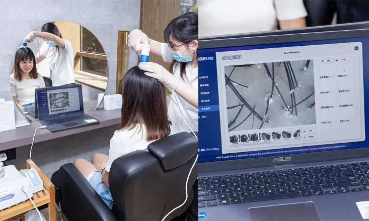 先由得到IAT國際認證的專業頭皮治療師以放大鏡仔細分析頭皮狀態,評估一下毛髮健康指數。